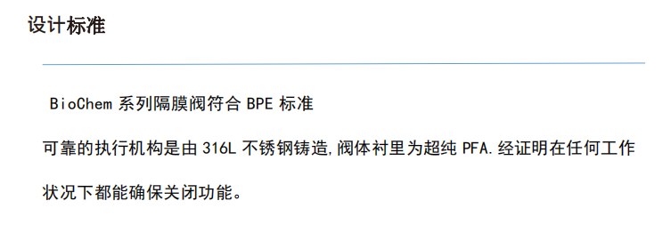 BioChemTM 系列隔膜阀接触流体部分是 PTFE 和 PFA