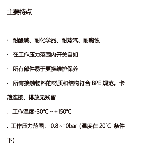 适用于腐蚀性和超纯性介质的流体和气体,特别适用于化学制药、 食品、