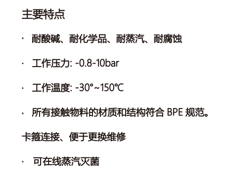 适用于腐蚀性和超纯性介质的流体和气体,特别适用于化学、制药、