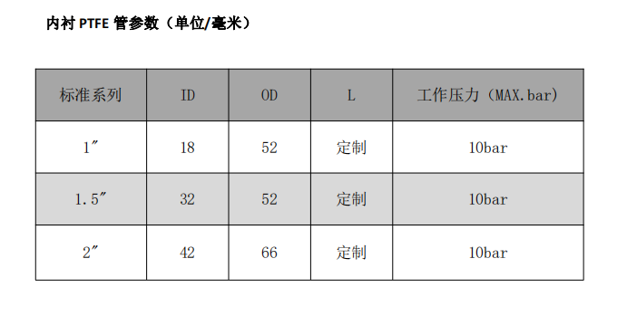 产品外 316L 不锈钢加强,内部衬 PTFE 管,可抗渗透性强,满足
