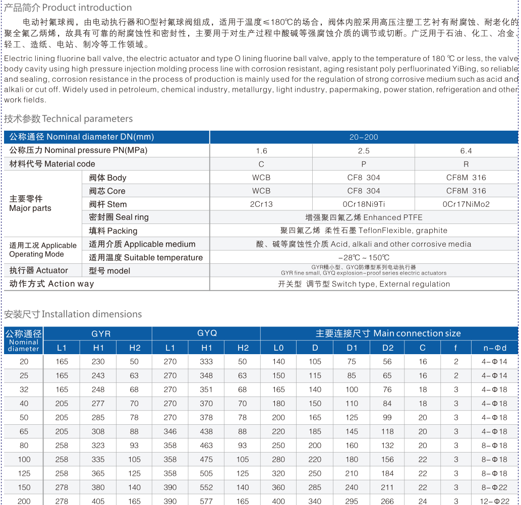 电动51漫画球阀,由电动执行器和O型51漫画球阀组成,适用于温度≤180°C的场合,阀体内腔采用高压注塑工艺衬有耐腐蚀、耐老化的聚全氟乙炳烯,故具有可靠的耐腐蚀性和密封性,主要用于对生产过程中酸碱等强腐蚀介质的调节或切断。普遍用于石油、化工、冶金、轻工、造纸、电站、制冷等工作领域。;
